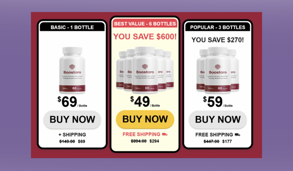 Let’s talk money. I’ve tried quite a few male health supplements before, and to be honest, some were ridiculously overpriced. But I was pleasantly surprised to see that Boostaro offered multiple bundle options with solid discounts.