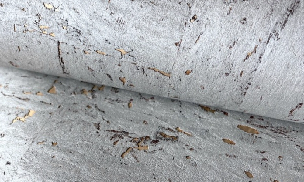California Wallpaper cork styles can include metallic accents like gold and silver, patina-style flecks, and different color infill effects that create dimension. Cork can also present as larger “sheet-laid” visuals or as narrower strip-cut visuals, which gives you control over how architectural the wall feels.