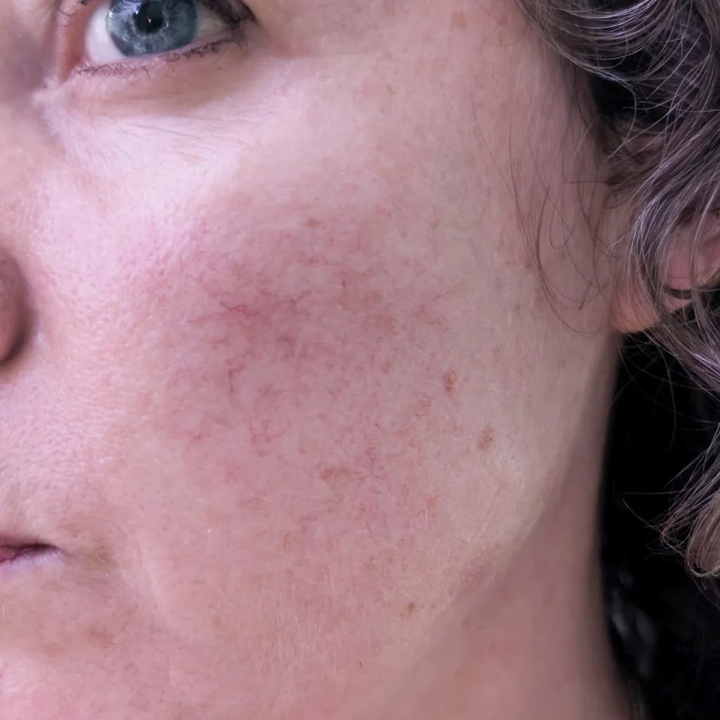 The sensation during treatment feels a little like small elastic bands flicking against the skin – momentarily sharp but entirely tolerable. What surprised me most was the lack of downtime. There was no significant redness or swelling afterwards, and even after just one session, the most noticeable spider veins had already disappeared.