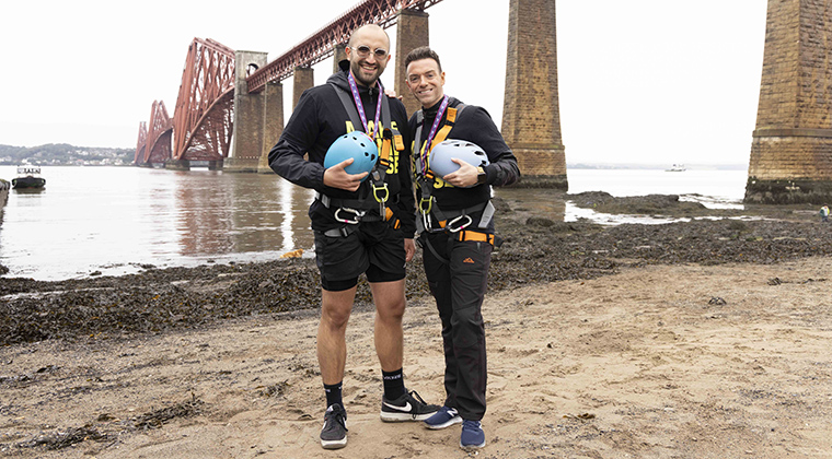 In a heart-pounding adventure that had bystanders holding their breath, two of Scotland’s best-loved radio stars, Des Clarke and Fat Brestovci took a breathtaking plunge off the iconic Forth Rail Bridge, dangling a whopping 165 feet above ground level!