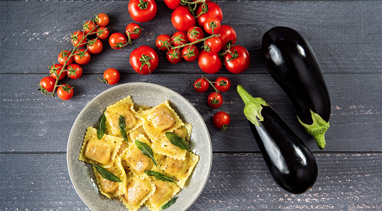 Teo recommends serving The Vegan Aubergine Ravioli the proper Italian way, in a bowl with just a drizzle of extra virgin olive oil or vegan butter, topped with fresh sage. Just let the food do the rest – bellissimo!