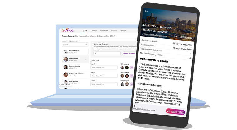 Some of the most exciting features of GoVida are those designed to bring teams together, such as weekly wellness challenges. A leader-board shows who’s actively participating in challenges, and injects some healthy competition and camaraderie back into the workplace; perfect for reigniting team spirit.