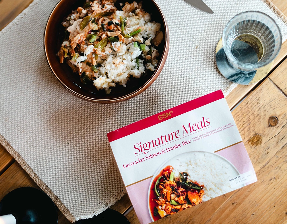 This February sees two new proteins added to GSN’s Signature Range stable, a Firecracker Salmon & Jasmine Rice (30.2g protein) and a Sri Lankan inspired Pork Curry (43.1g protein). Whilst the former is a modern classic celebrating the union of bold zesty flavours associated with meticulously cooked salmon and fragrant jasmine rice, the latter tips its hat to the deep layered cuisine of East Asia, featuring tender pork simmered in a fragrant blend of spices.
