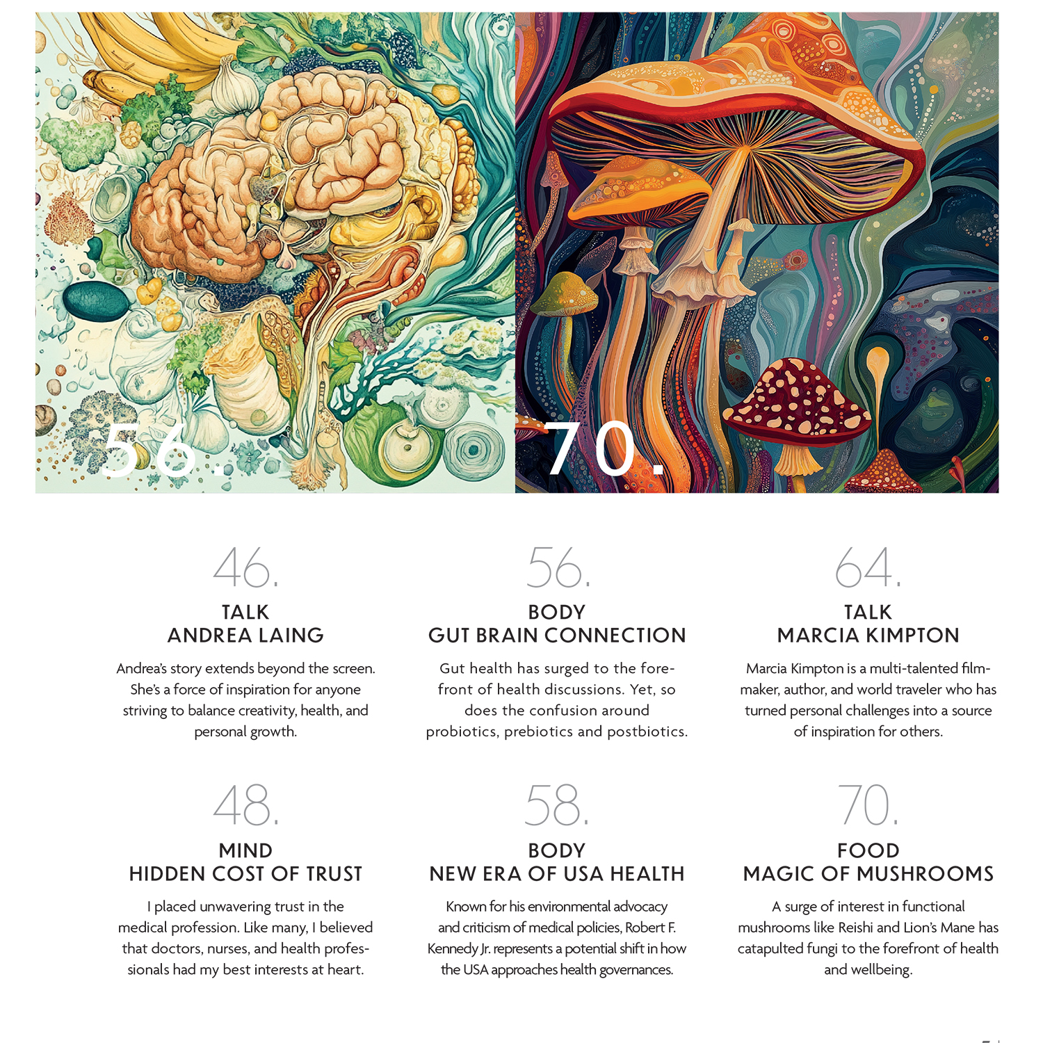 As you explore these pages, let the interviews and features inspire meaningful shifts in your own wellness journey. Whether it’s Andrea Laing’s creative balance, Marcia Kimpton’s triumph over challenges, or the nurturing practices at Broughton Sanctuary, each story offers a spark to light your path.