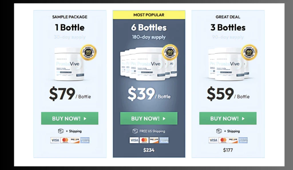 I have detailed the pricing and shipping charges of ProstaVive in this section. You will see that there are three different packages available for the users to choose from.