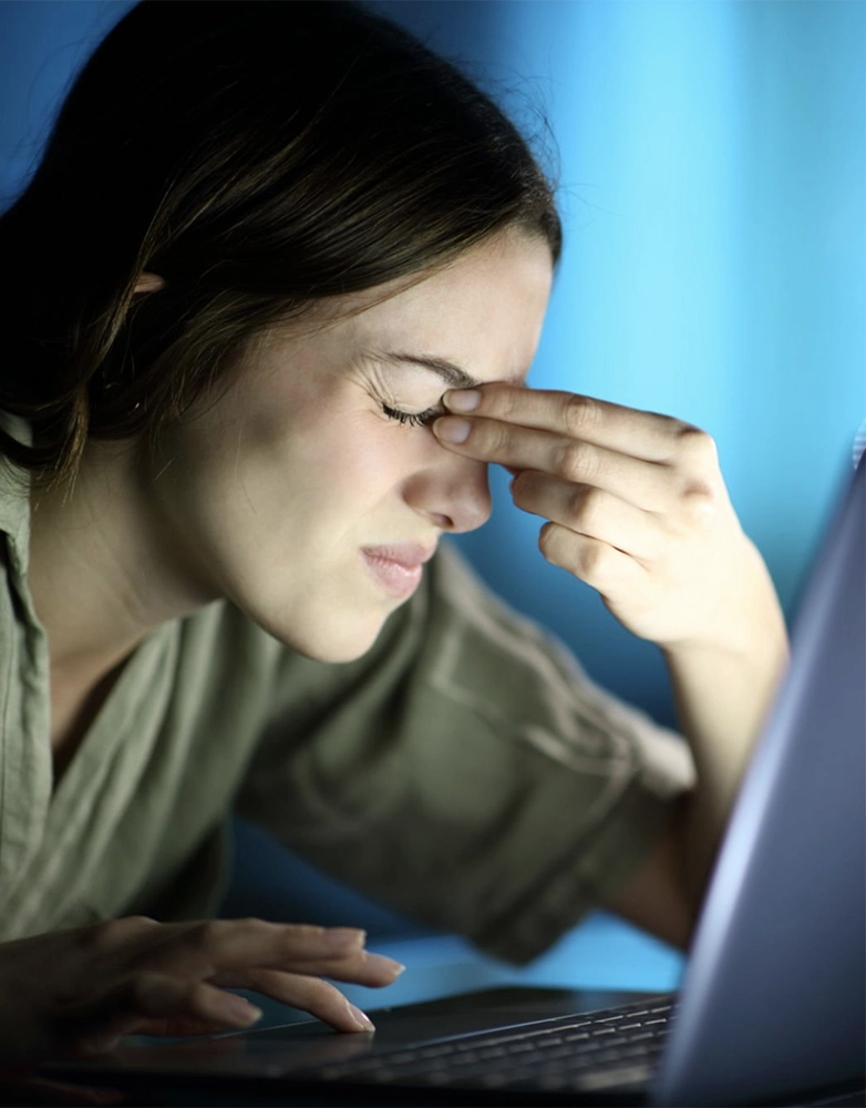 The blue light emitted from these devices, combined with reduced blinking, causes the eyes to lose moisture and strain more than usual.